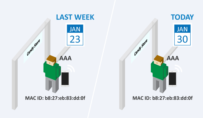 Phân biệt nếu khách hàng đã ghé thăm cửa hàng trước bằng cách so sánh các định danh duy nhất với các hồ sơ trước đó. Bạn có thể tìm hiểu có bao nhiêu khách hàng đã quay trở lại trong 3 tháng qua. Điều này có thể được sử dụng để đo lường mức độ quan tâm của khách hàng thông qua tần suất và thói quen mua sắm của khách hàng cũ.
