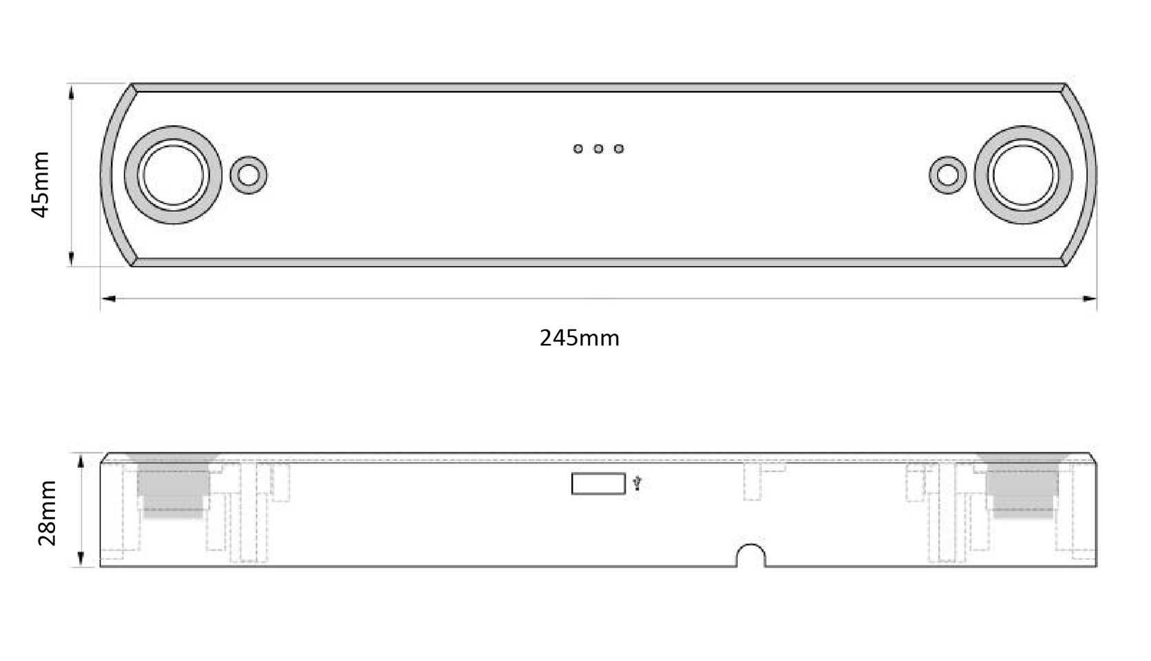 Device dimensions (WxDxH): 246mm x 46mm x 28mm Packing dimensions (WxDxH):255mm x 210mm x 55mm |