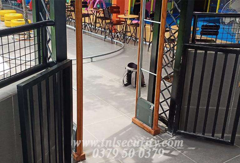 Cổng từ an ninh tại quán café sách nhìn từ ngoài vào